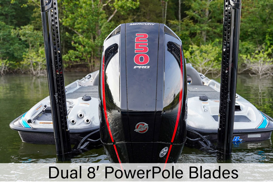 This boat features our Full Team Deck concept by incorporating a front deck that's not too large of a deck to be a nimble platform, yet large enough for team anglers to work side-by-side.