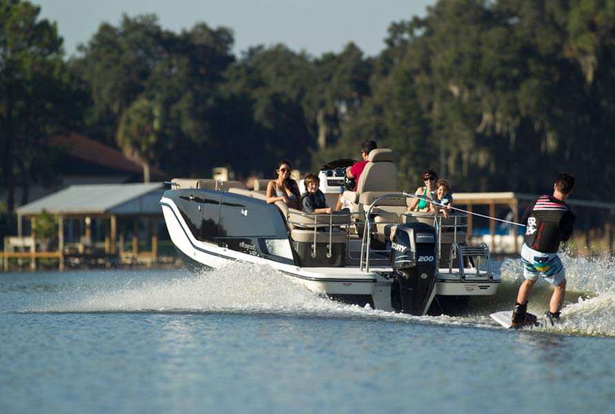 - Reliable Mercury outboard power. Standard power is a 150 FourStroke outboard with 200 HP Verado optional offering. Easy operation for seasoned and beginner boaters alike.